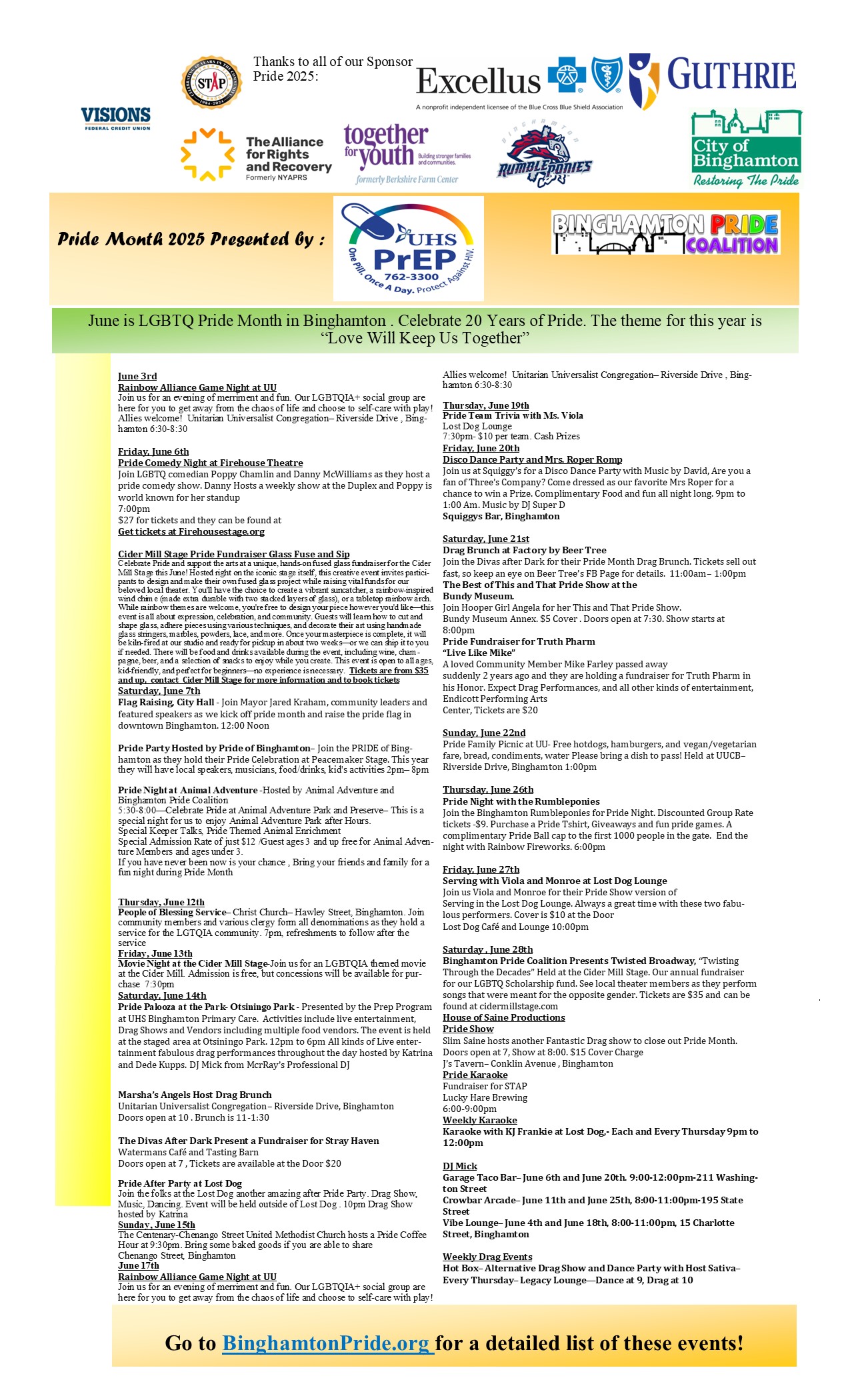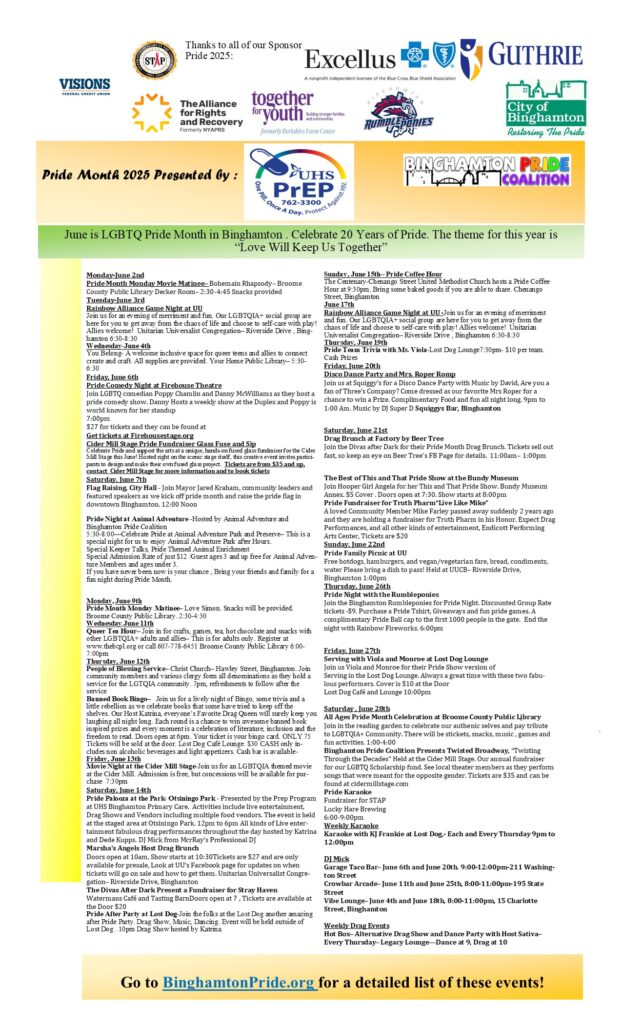 For general inquiries, Pride Palooza sponsorship and vendor information, please email BinghamtonPride607@gmail.com.